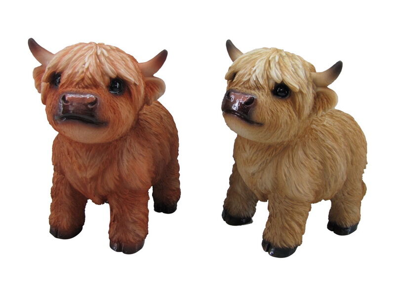 - Set of 2 Highland Cow Figurines, includes one Standing Brown and one Standing Light Brown cow for a charming contrast