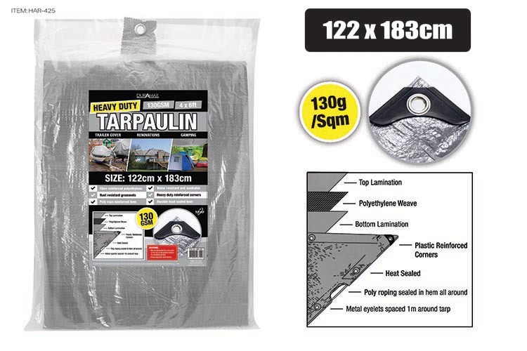 1pce Grey Heavy Duty Tarp With Eyelets 122x183cm Garden Supply Accessory from DURAMAX