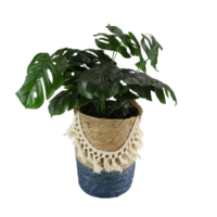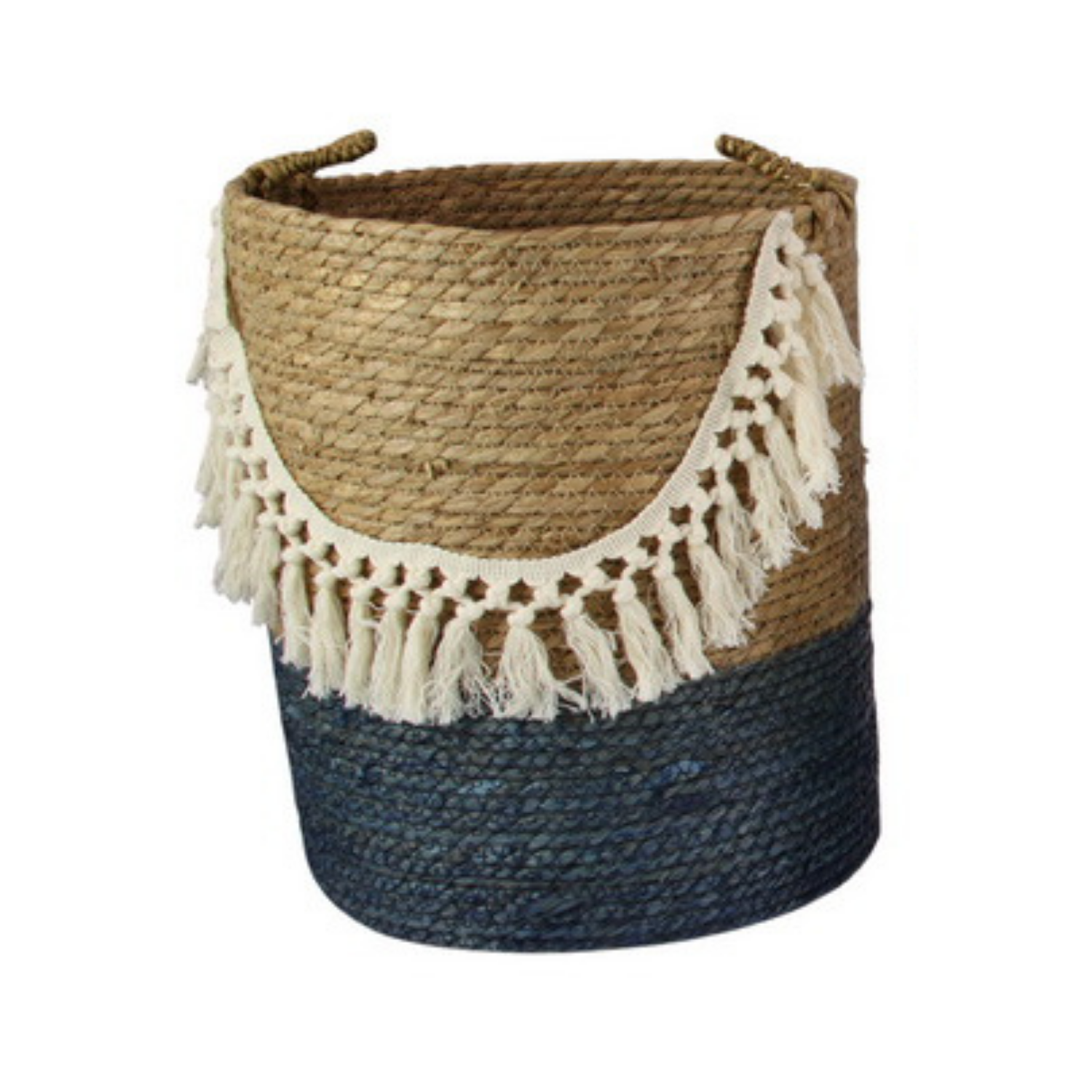 Large 39cm Storage Basket with Blue Bottom Sea Grass Woven Boho Tassels
