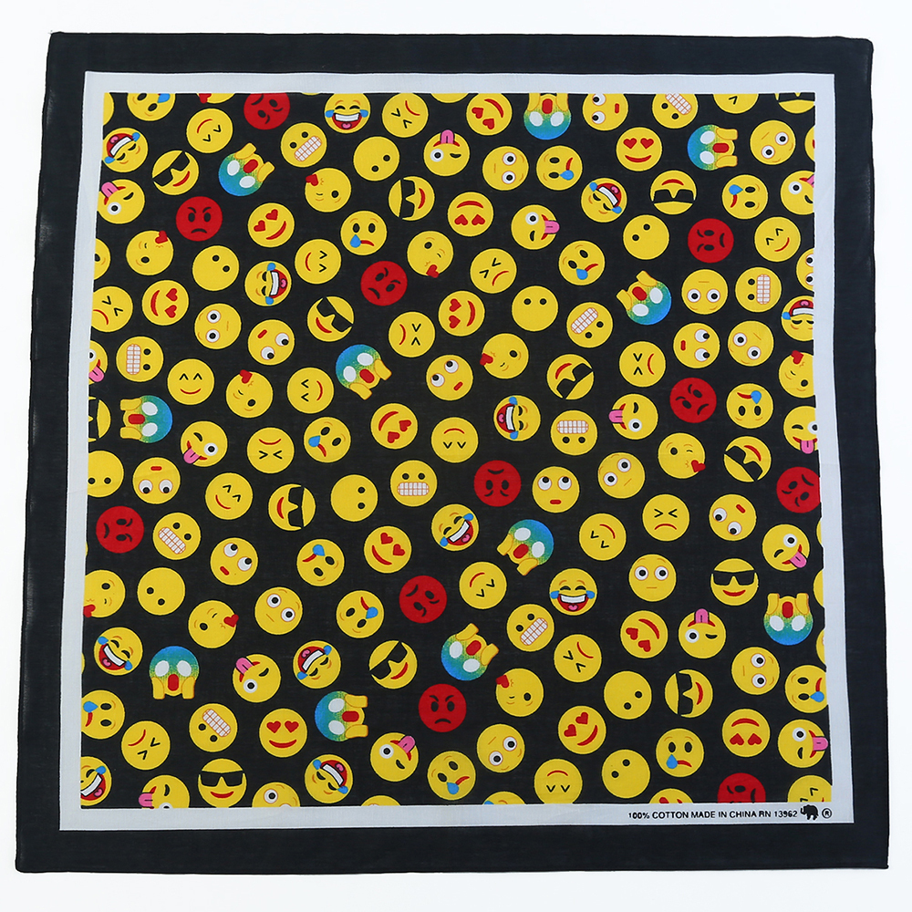Bandana Yellow Emoji Faces on Black 1pce 54cm 100% Cotton Head Wrap Scarf